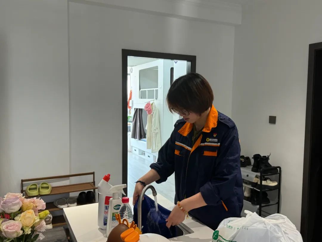 在衛(wèi)生打掃的同時(shí),黨員骨干中的安全管理人員還對(duì)宿舍的用水、用電、滅火器等安全設(shè)施進(jìn)行了全面排查。他們認(rèn)真檢查了電線、插座等關(guān)鍵部位,及時(shí)發(fā)現(xiàn)并整改了存在的安全隱患,形成閉環(huán)。