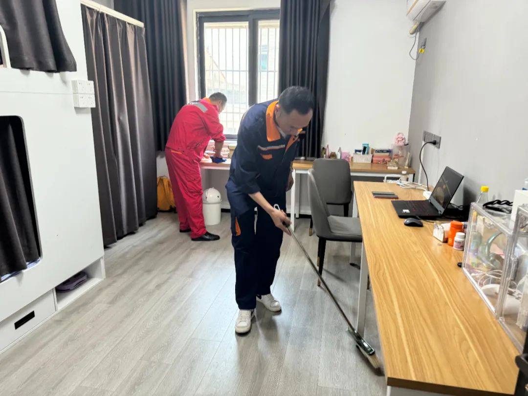 在員工宿舍,黨員骨干們紛紛拿起掃把、抹布等清潔工具,對(duì)宿舍樓道、公共區(qū)域進(jìn)行了全面清掃。他們不怕臟、不怕累,認(rèn)真細(xì)致地清理了地面垃圾、墻角灰塵、衛(wèi)生間污漬等,為住宿員工日常衛(wèi)生整理建立標(biāo)準(zhǔn)、打個(gè)樣。