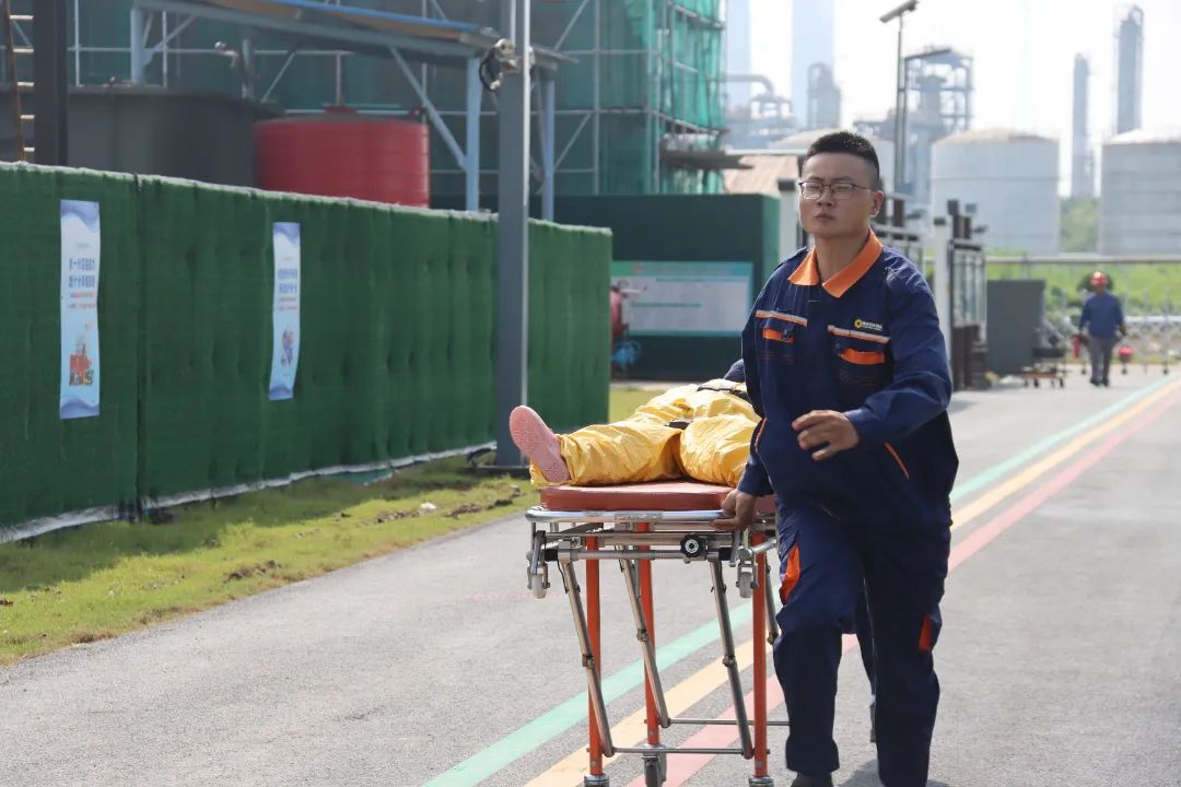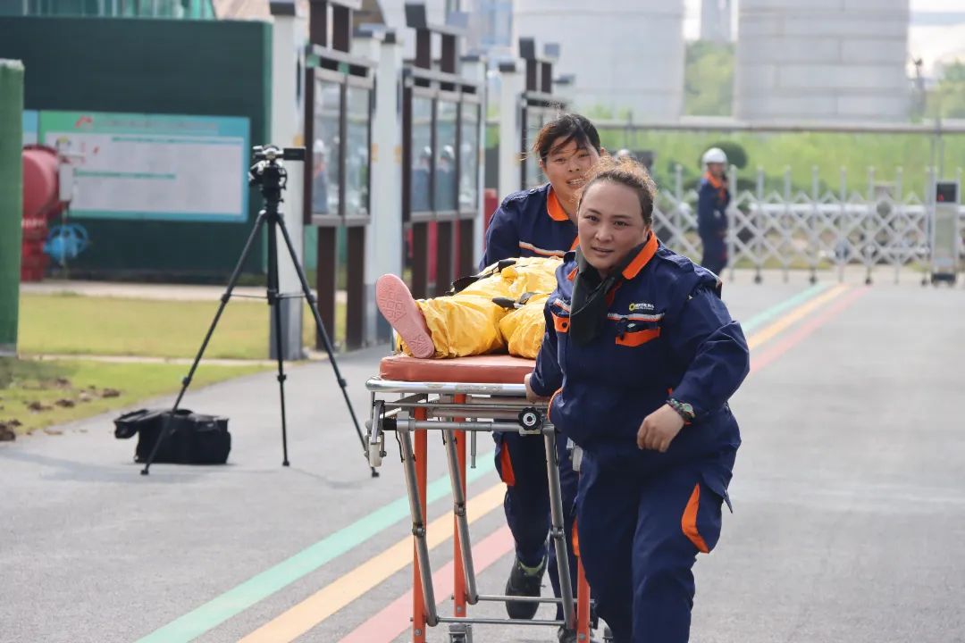 "擔架急救"在應急救援體系中占據著舉足輕重的地位,同樣,它也是我公司本年度新增的兩項應急能力考核項目之一。員工們兩兩組隊,隨著"開始"指令的下達,即刻進入考試狀態:飛奔至模擬傷員所在地,遵循“傷員腳朝前,頭朝后”的原則,“快”“準”“穩”轉移傷員,確保擔架平穩抵達終點。該項目進一步增強了員工之間的溝通與協作能力。