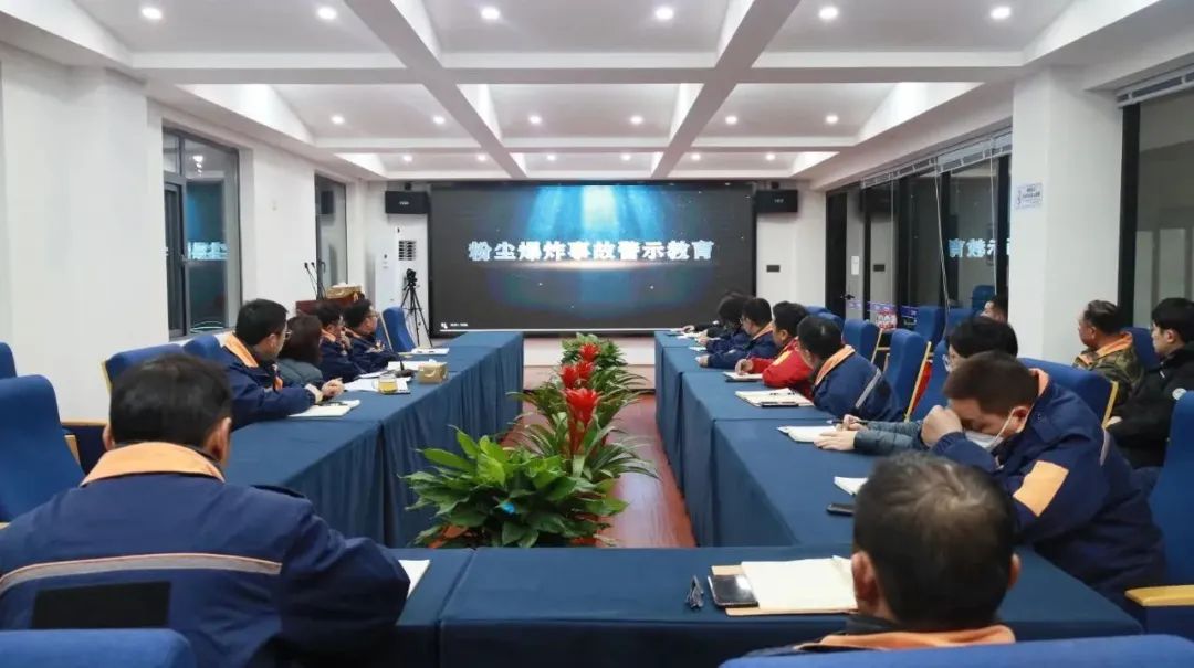 與會人員深度剖析了最近發生的10項事故,從中選取江蘇燊榮金屬科技有限公司粉塵爆炸事故以及新余火災事故作為典型警示案例,共同觀看了《粉塵爆炸事故警示教育》《違規動火警示教育片》。